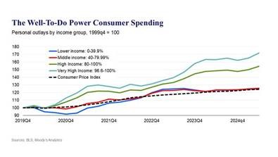 The only Americans spending big money are the top 20% of earners.  These households have done well, and those in the top 3.3% of the distribution have done even better. The rest are tightening their belts and not buying more.