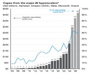 Up to now, there is little sign that AI investment is delivering faster productivity.  But ironically, the huge investment in AI data centers and infrastructure is holding up the US economy in the meantime. Almost 40% of the US real GDP growth last quarter was driven by tech capex and the bulk of that capex was in AI-related investments.