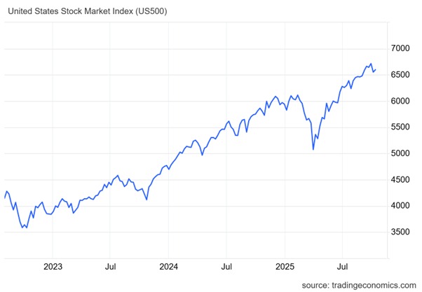 Investors in financial assets (banks, insurance companies, pension funds, hedge funds etc) are wildly optimistic and confident about financial markets. As the chair of Rockefeller International, Ruchir Sharma put it: “Despite mounting threats to the US economy — from high tariffs to collapsing immigration, eroding institutions, rising debt and sticky inflation — large companies and investors seem unfazed. They are increasingly confident that artificial intelligence is such a big force, it can counter all the challenges.” AI companies have accounted for 80 per cent of the gains in US stocks so far in 2025. That is helping to fund and drive US growth, as the AI-driven stock market draws in money from all over the world.  Foreigners poured a record $290bn into US stocks in the second quarter of 2025 and now own about 30% of the market — the highest share in post-second world war history. As Sharma comments, the US has become “one big bet on AI”.