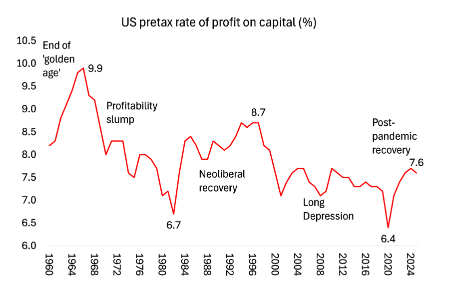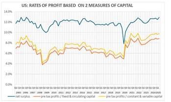 And the profitability of US capital has improved since the end of pandemic slump in 2020.  According to calculations by Brian Green, the US corporate pre-tax rate of profit on capital is at a higher level than in 2006.