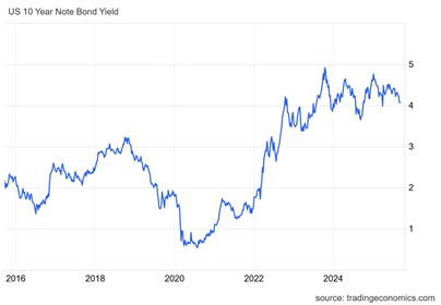 Tariff revenues are not going to reduce the annual federal government deficit currently at over 5.5% of GDP (if slowing slightly).  Indeed, projections are for the annual deficits to rise to 5.9% of GDP over the next ten years, with the public debt to GDP ratio heading towards 125% of GDP.  The rising public debt ratio is another worry for investors in government bonds and so will drive up bond yields whatever the Federal Reserve does to reduce short-term rates.