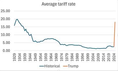 Trump and the MAGA team claim that tariffs will bring in so much tax revenue ($1.8trn) and new business investment ($3-5trn extra) that the economy will boom (4% next year, they claim) and that will lead to hundreds of thousands of new jobs.  But there is no evidence to support these claims.