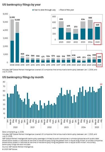And the weakest parts of the corporate sector are struggling. There have been 446 corporate bankruptcies year-to-date, the most in 15 years.