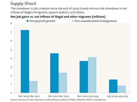 Trump sacked the head of Bureau of Labor Statistics after the BLS recorded a very weak jobs growth figure.  But since then, annual revisions of the jobs figures have reduced employment growth by 911k in the year to March 2025.  Sacking the messenger does not change the message. US jobs growth has slowed to a rate outside of recessionary periods not seen for more than 60 years.  Employment growth is slowing, not because of weak demand but because supply growth is drying up as immigration falls, manufacturing stays in recession and the government agencies and workforce are decimated by Trump.