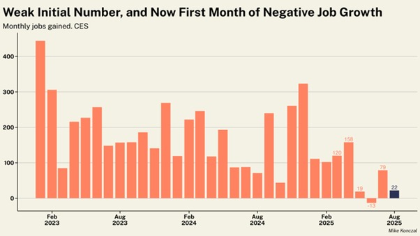 In August net jobs increased by just 22,000, while June was revised down to a fall of 13,000.